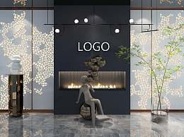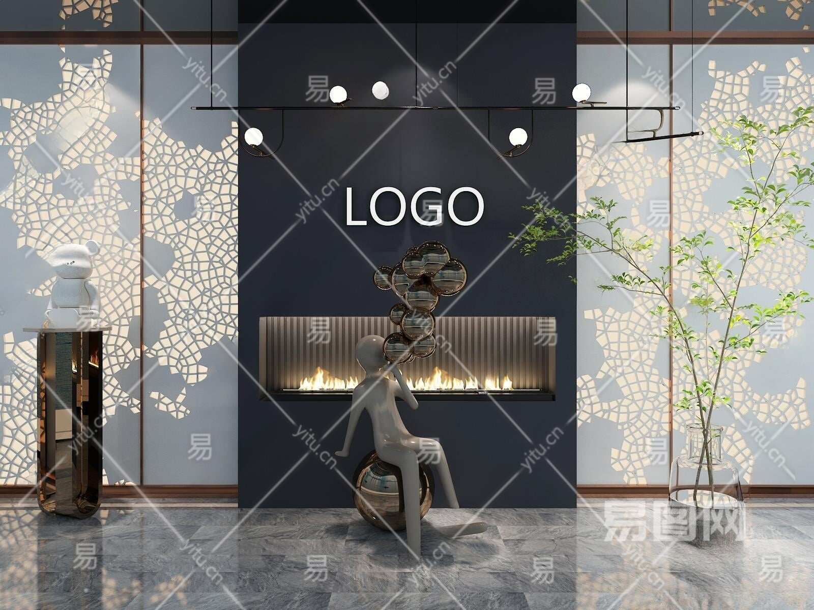 现代冲孔板壁炉背景墙3D模型下载