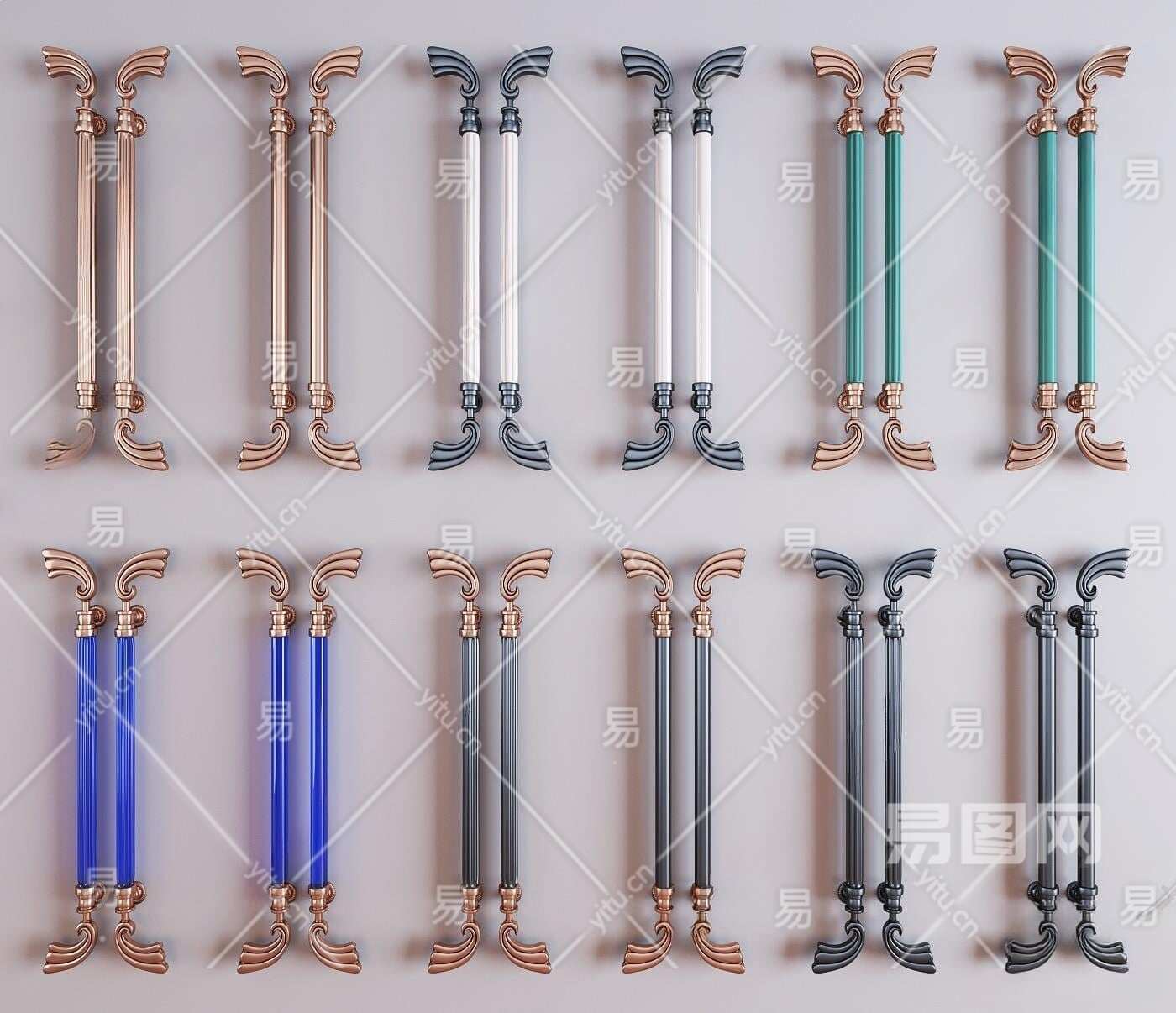 简欧金属大门把手3D模型下载