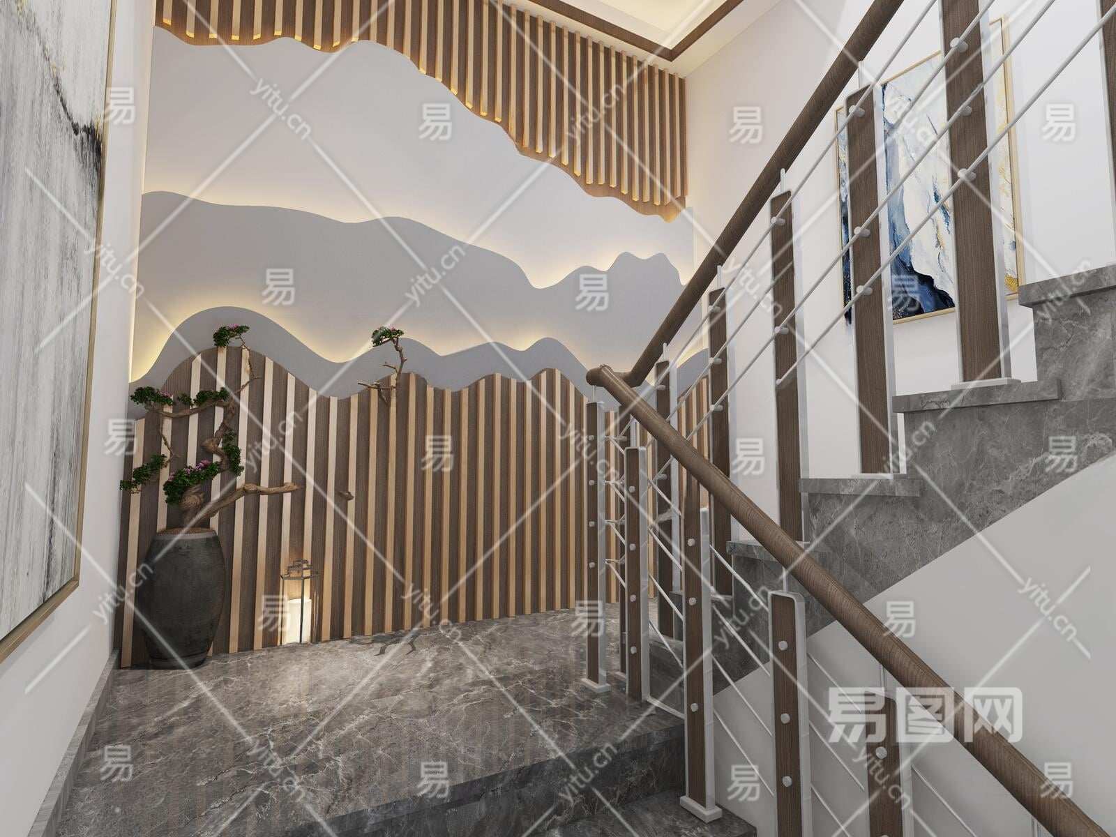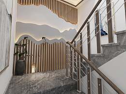新中式楼梯3D模型下载