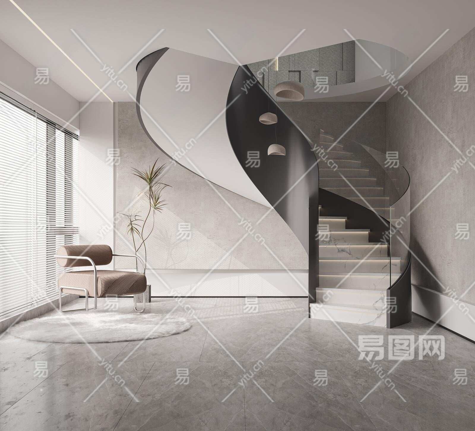 现代旋转楼梯3D模型下载