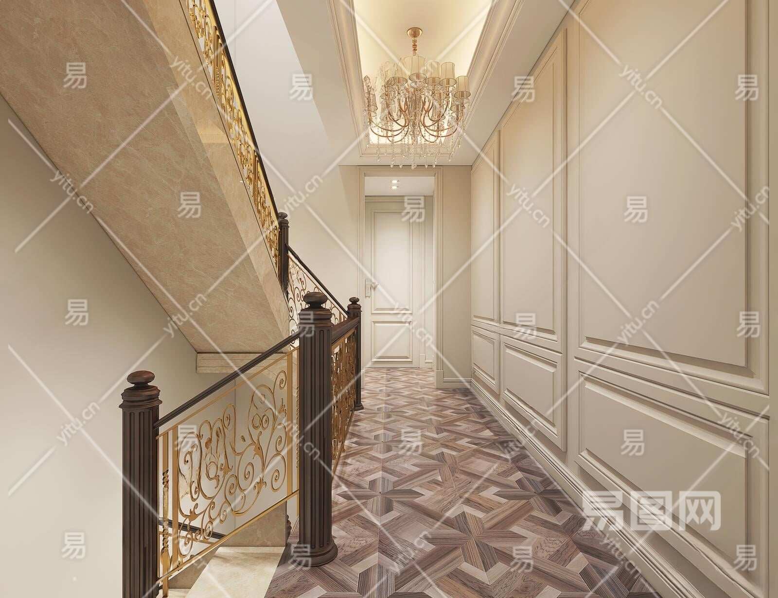 简欧扶手楼梯3D模型下载