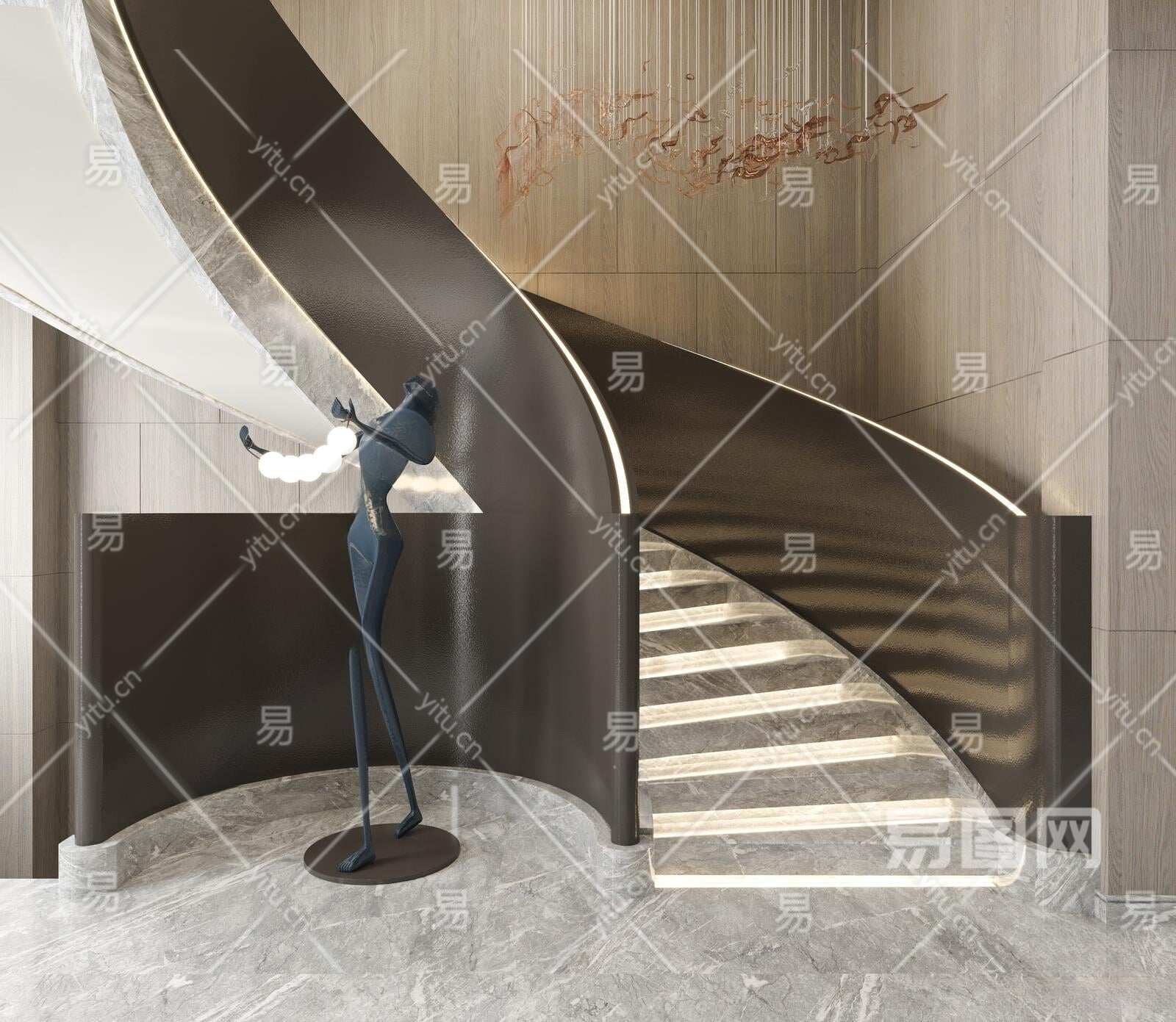 现代旋转楼梯3D模型下载