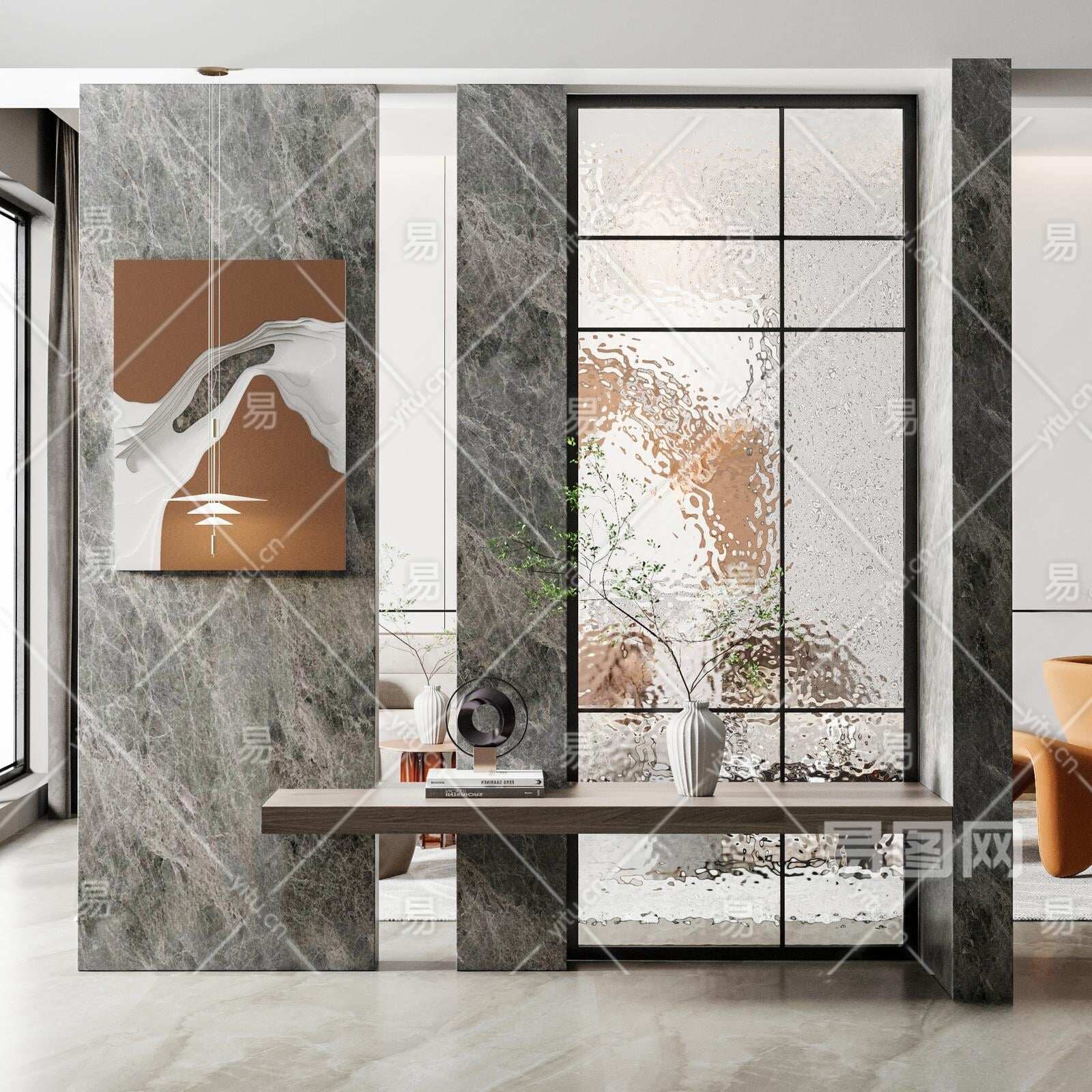 现代玻璃玄关隔断3D模型下载