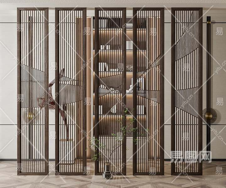 新中式隔断3D模型下载