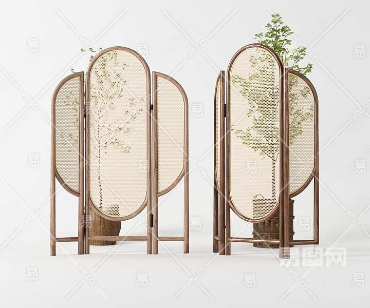 新中式藤编屏风3D模型下载