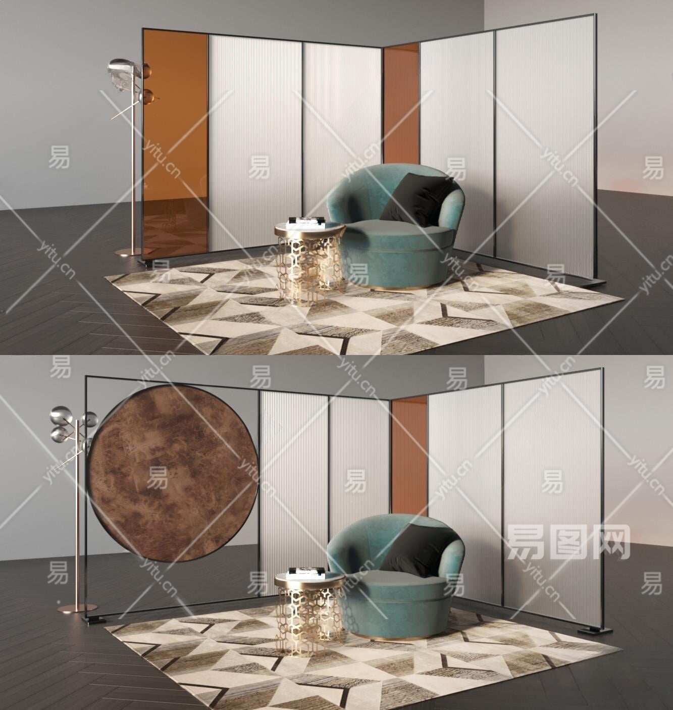 现代屏风3D模型下载