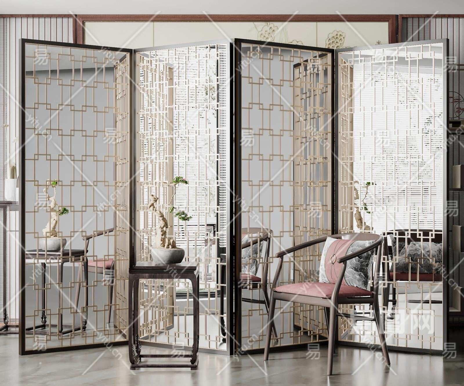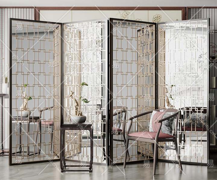 新中式屏风3D模型下载