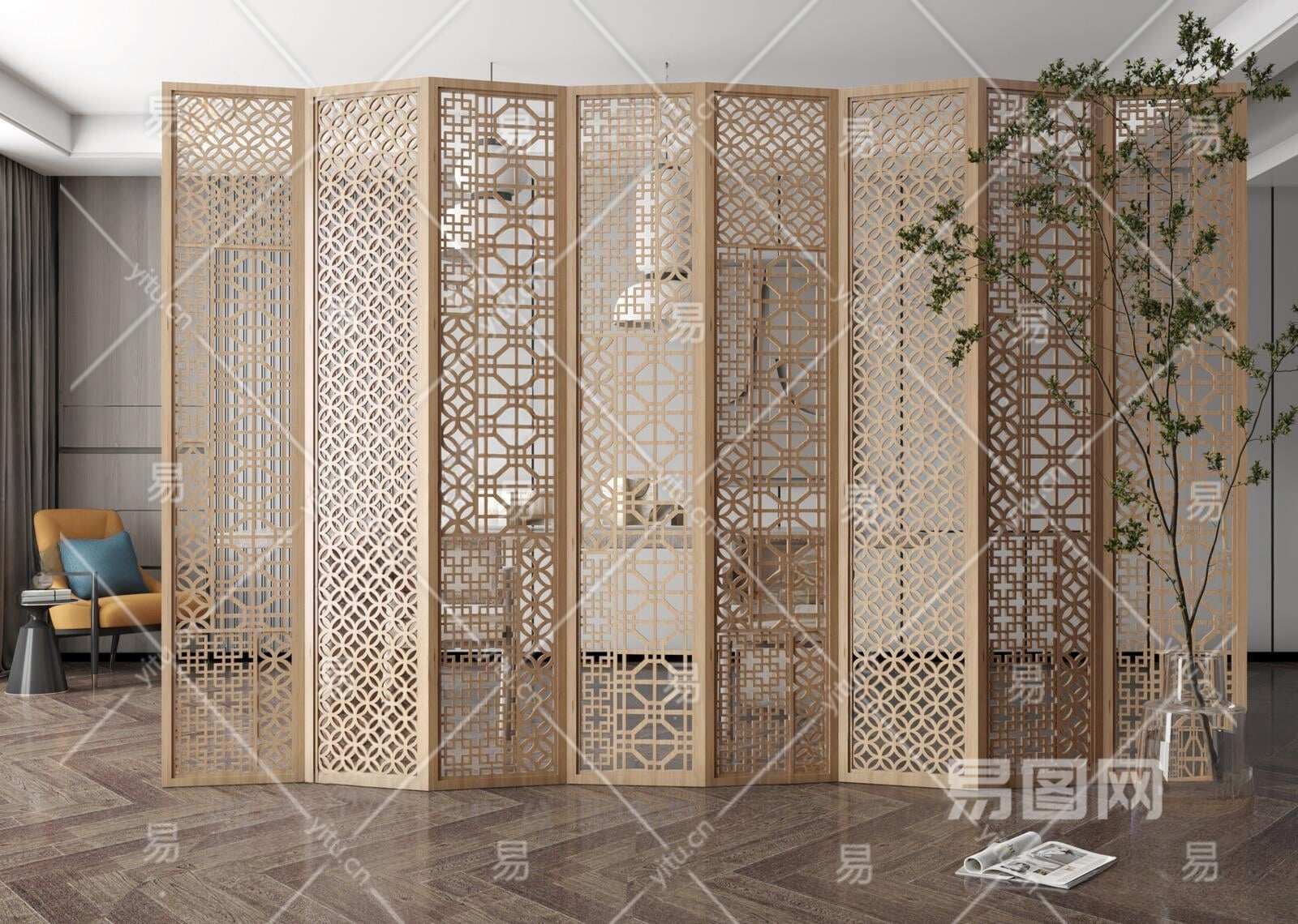 中式铜钱元素屏风3D模型下载