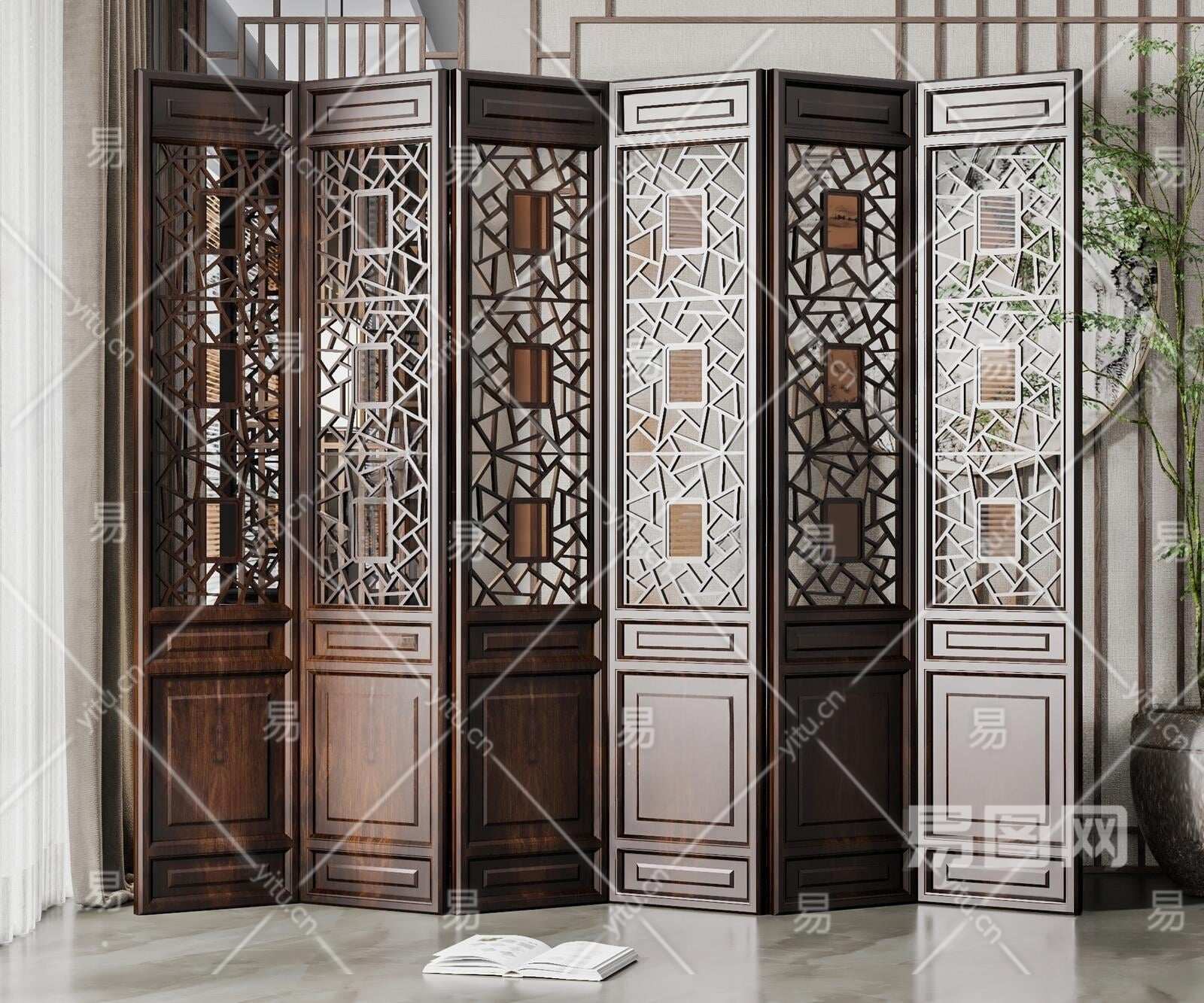 新中式镂空屏风3D模型下载