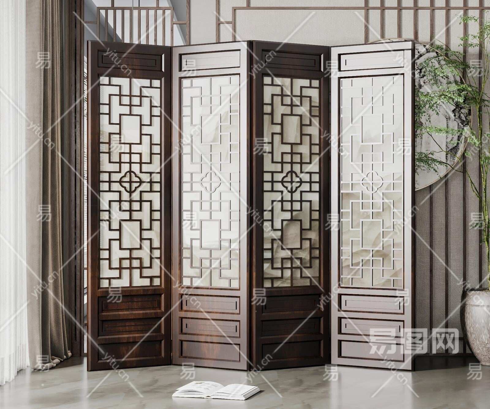 新中式折叠屏风3D模型下载