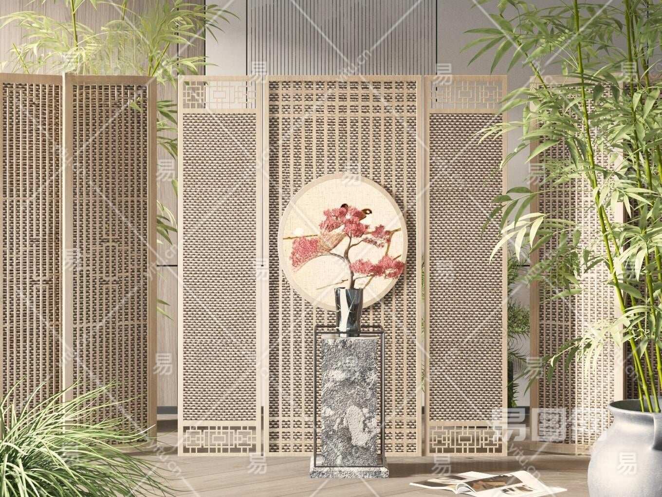 新中式屏风3D模型下载