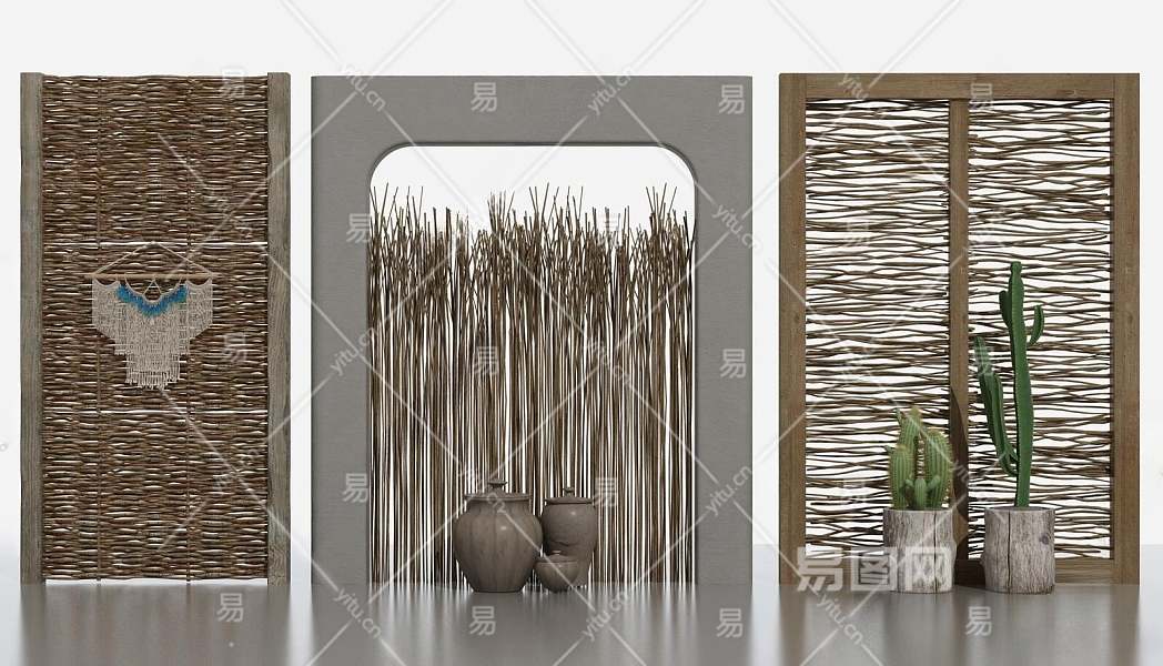 侘寂藤编隔断3D模型下载