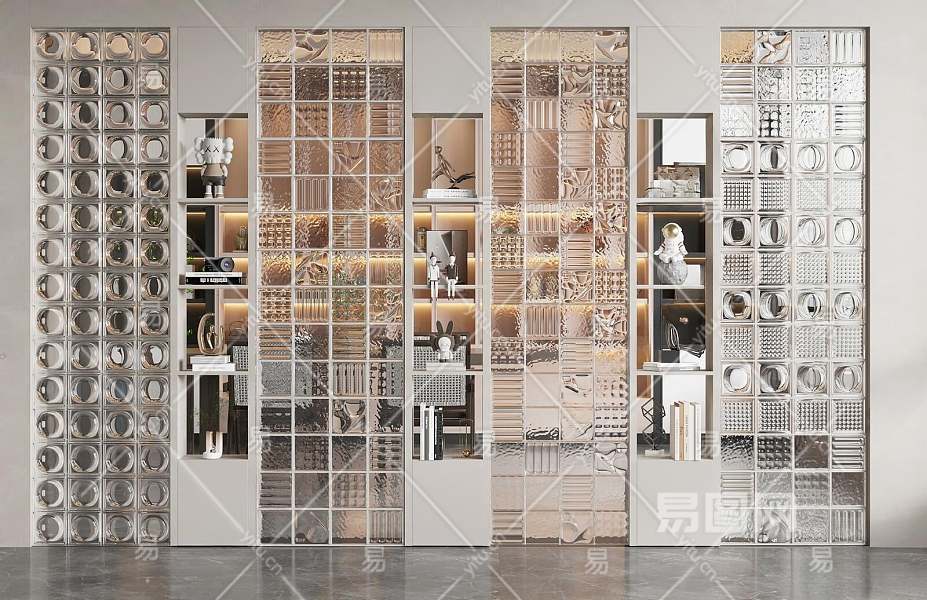 现代玻璃砖隔断3D模型下载
