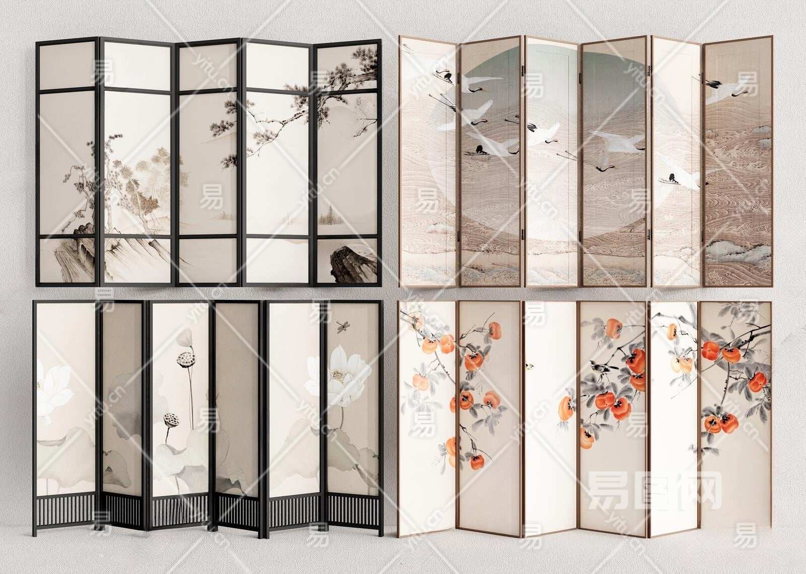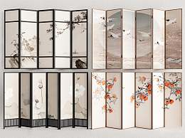 新中式折叠屏风3D模型下载