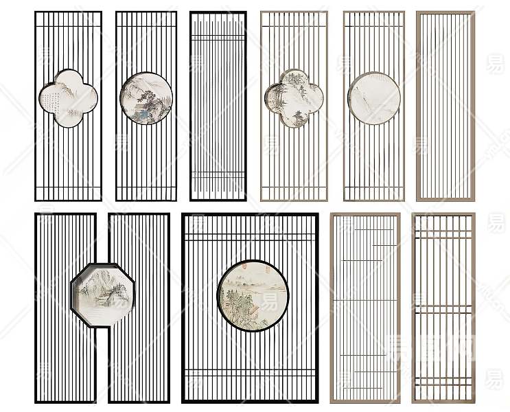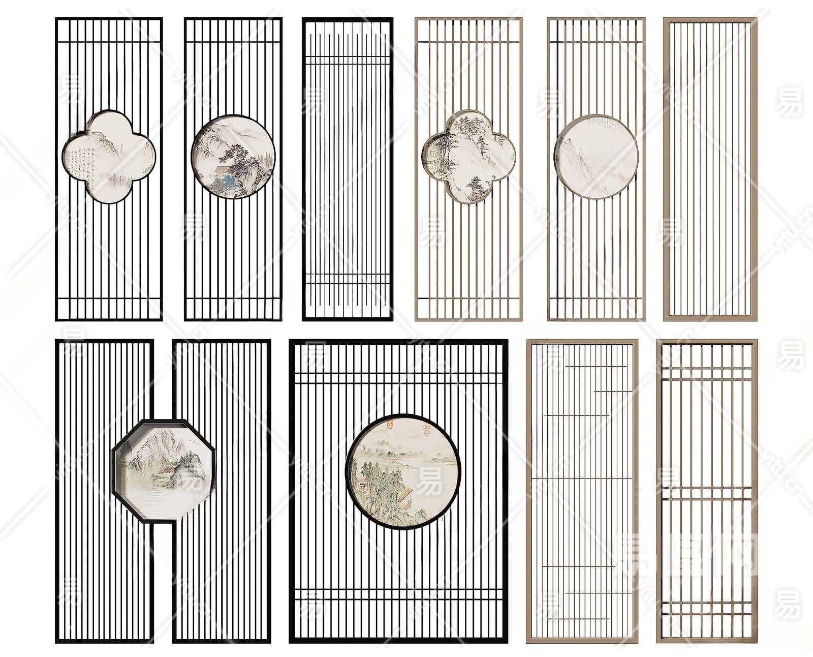 新中式隔断3D模型下载