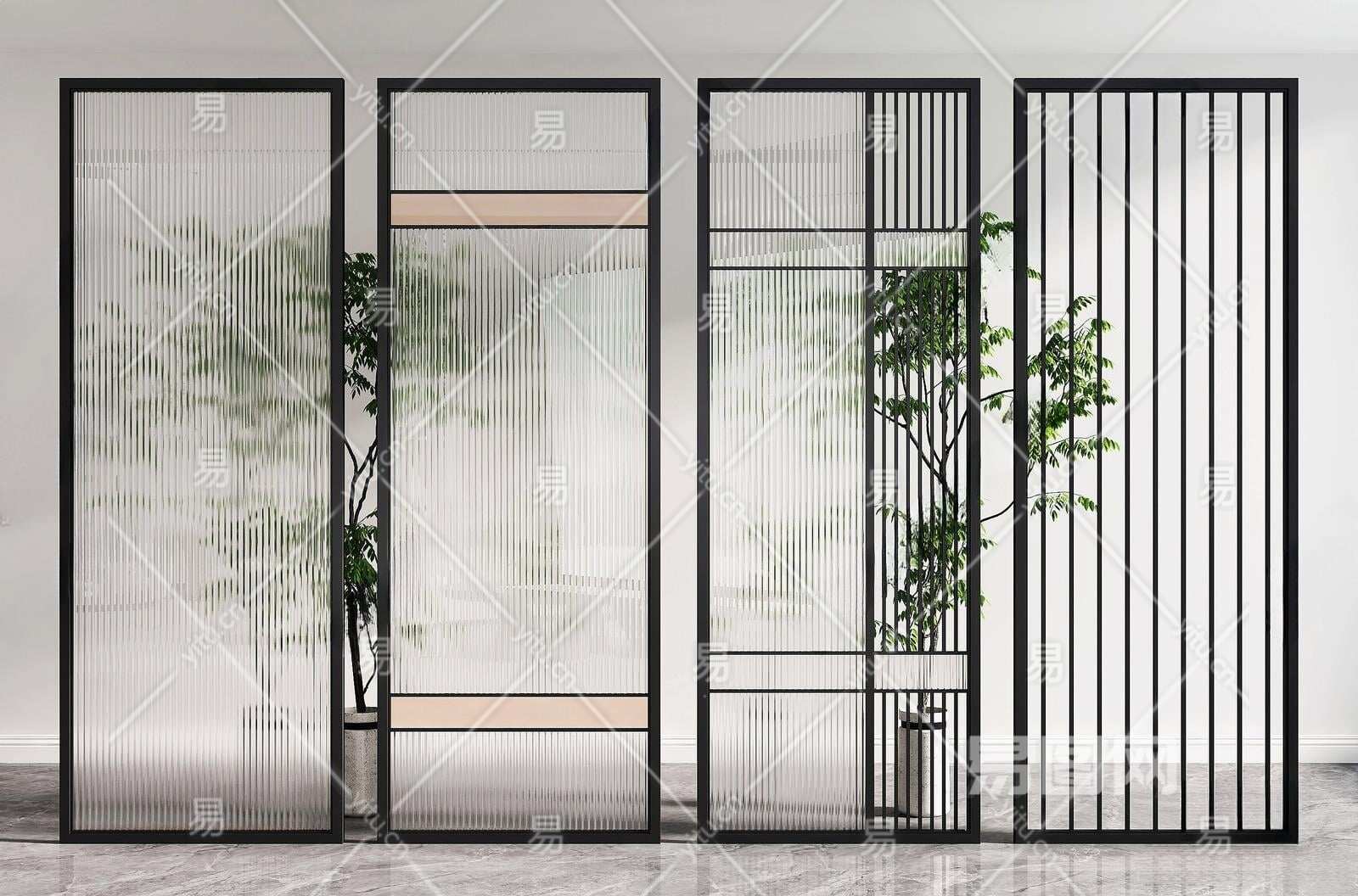 现代玻璃隔断3D模型下载