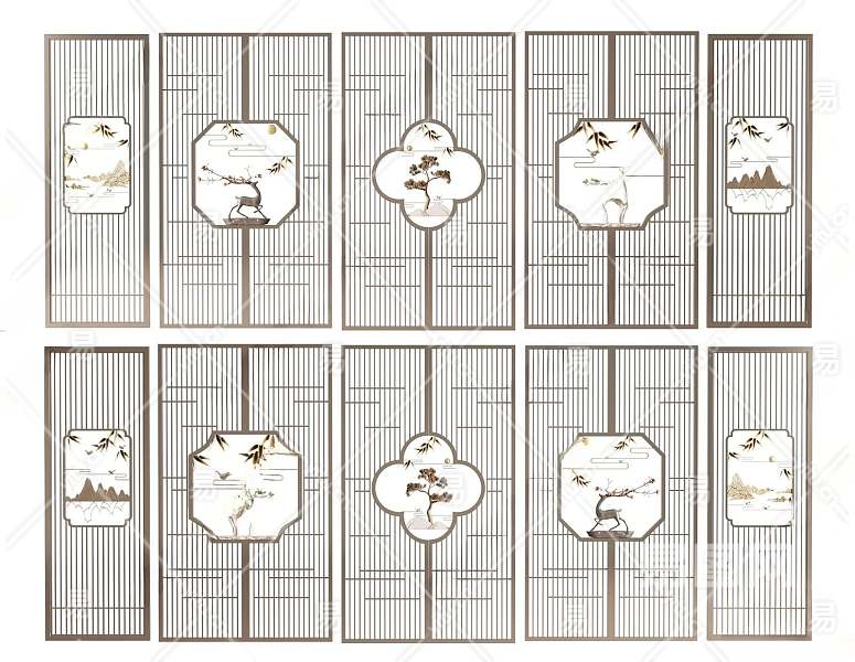 新中式隔断3D模型下载