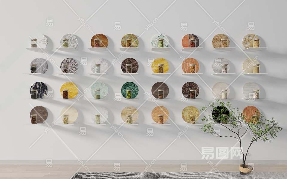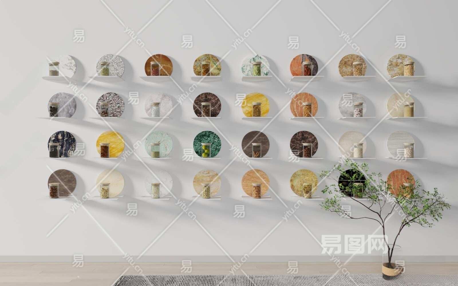 现代食材展示墙3D模型下载