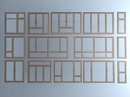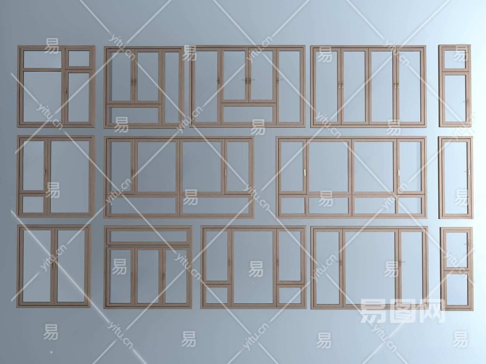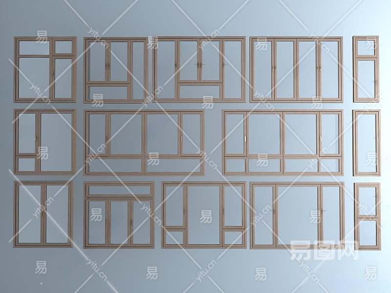 现代木纹色平开窗3D模型下载
