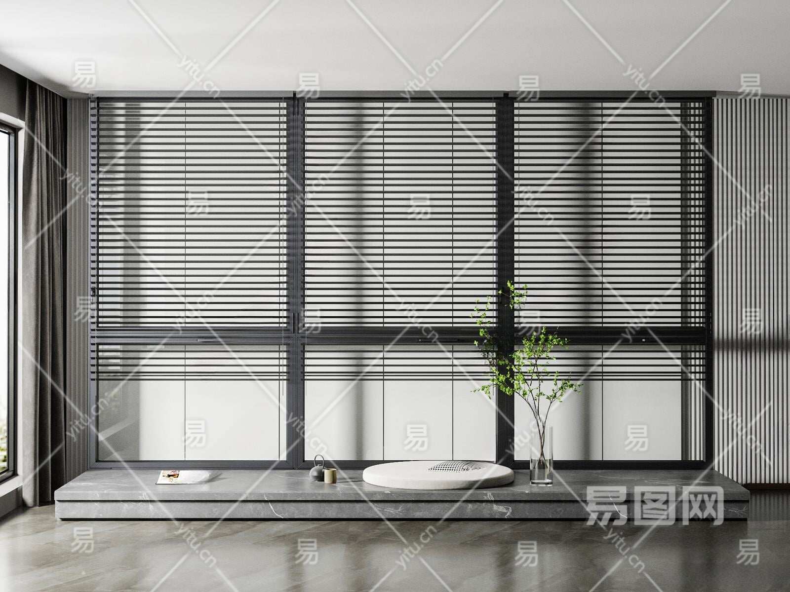 现代落地窗3D模型下载