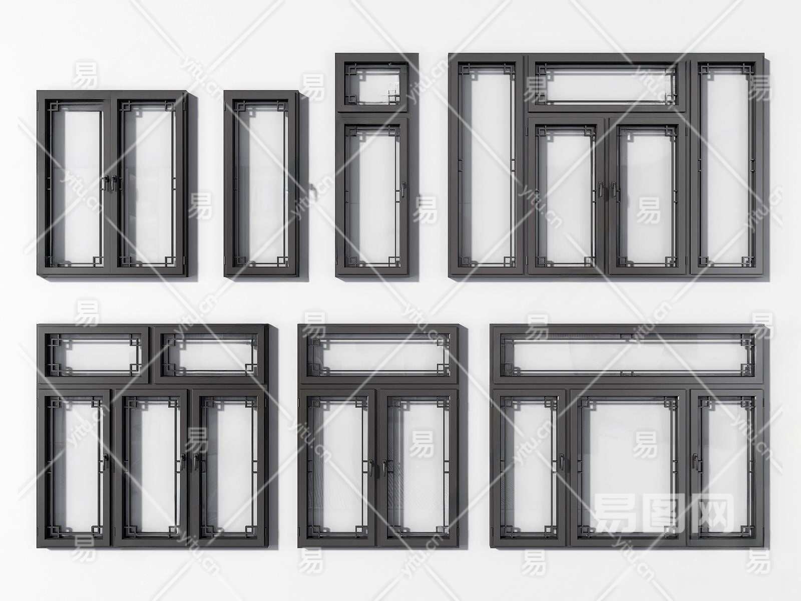 新中式平开窗3D模型下载