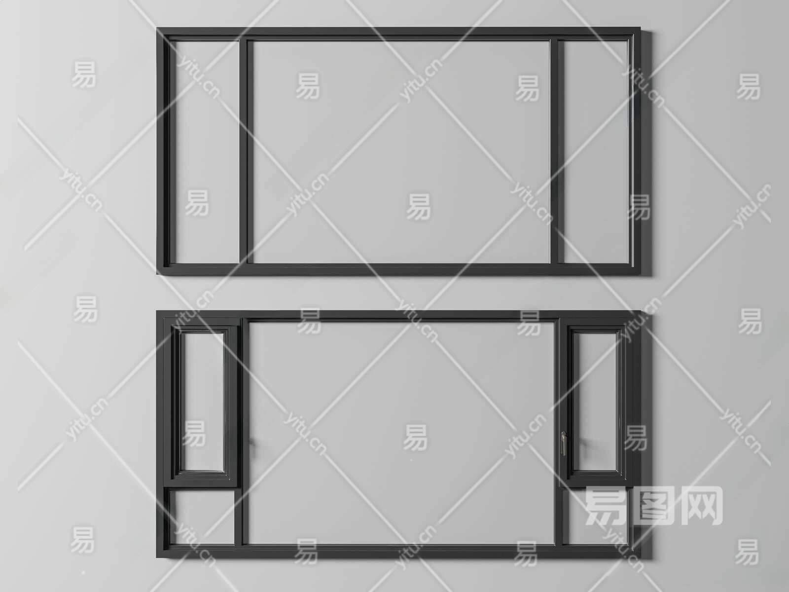 现代落地窗3D模型下载
