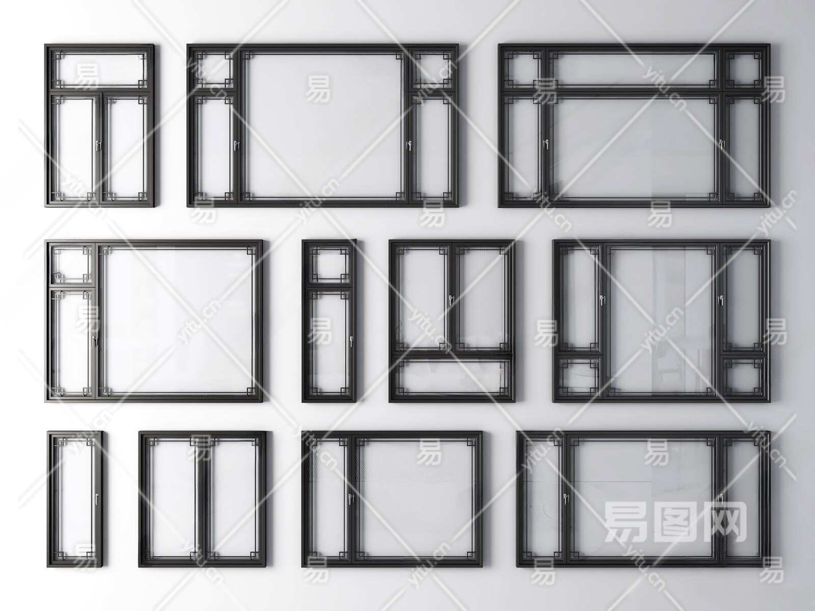 新中式窗户3D模型下载