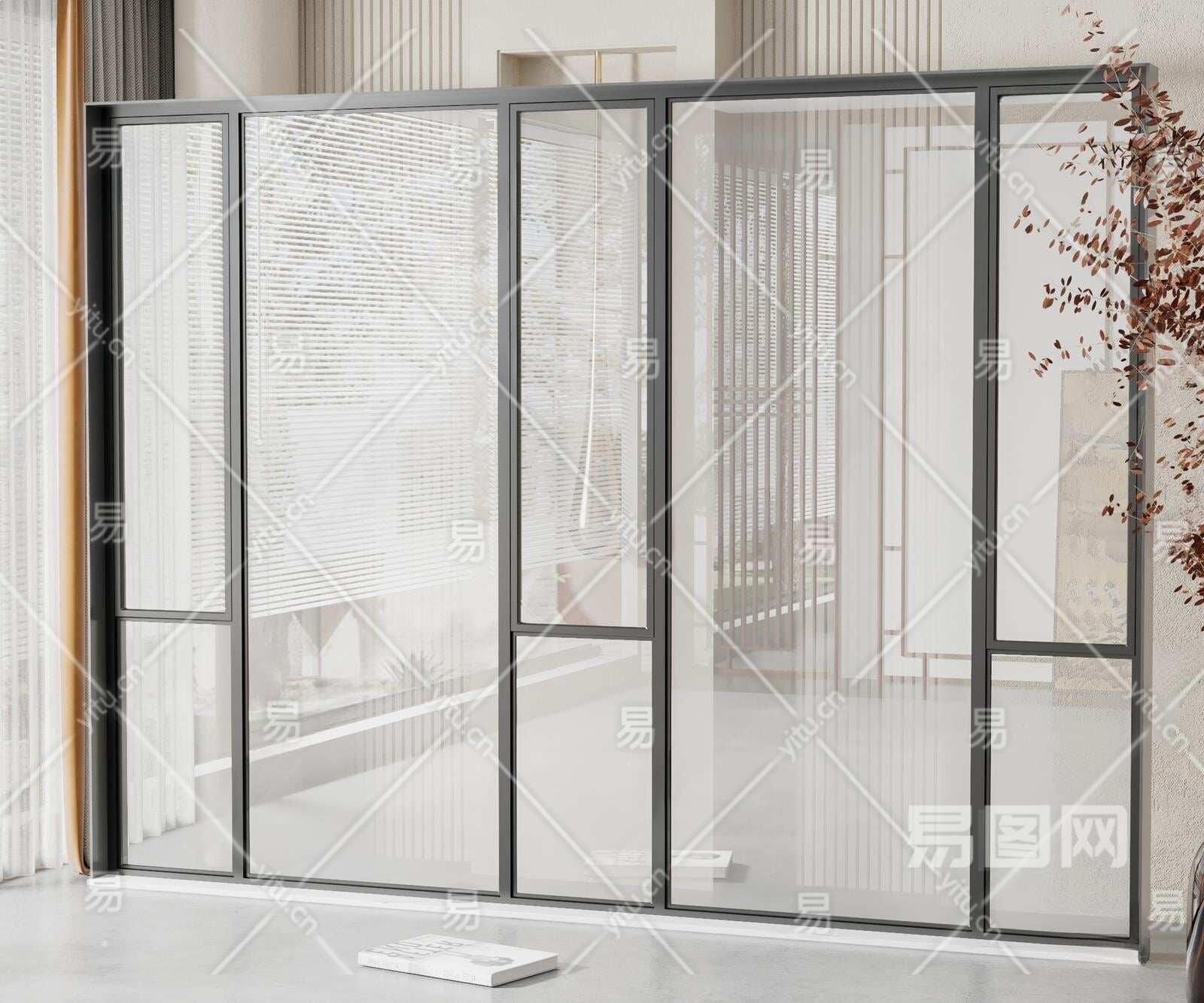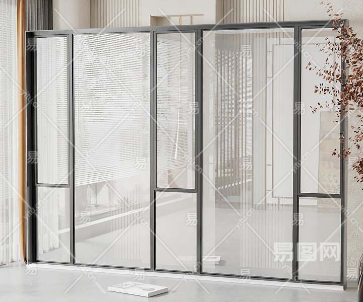 现代落地窗3D模型下载