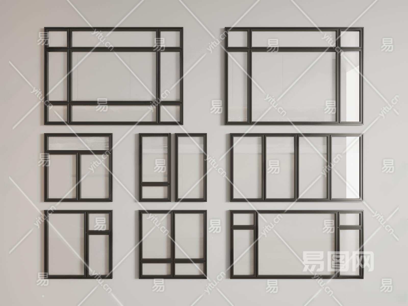 现代平开窗3D模型下载