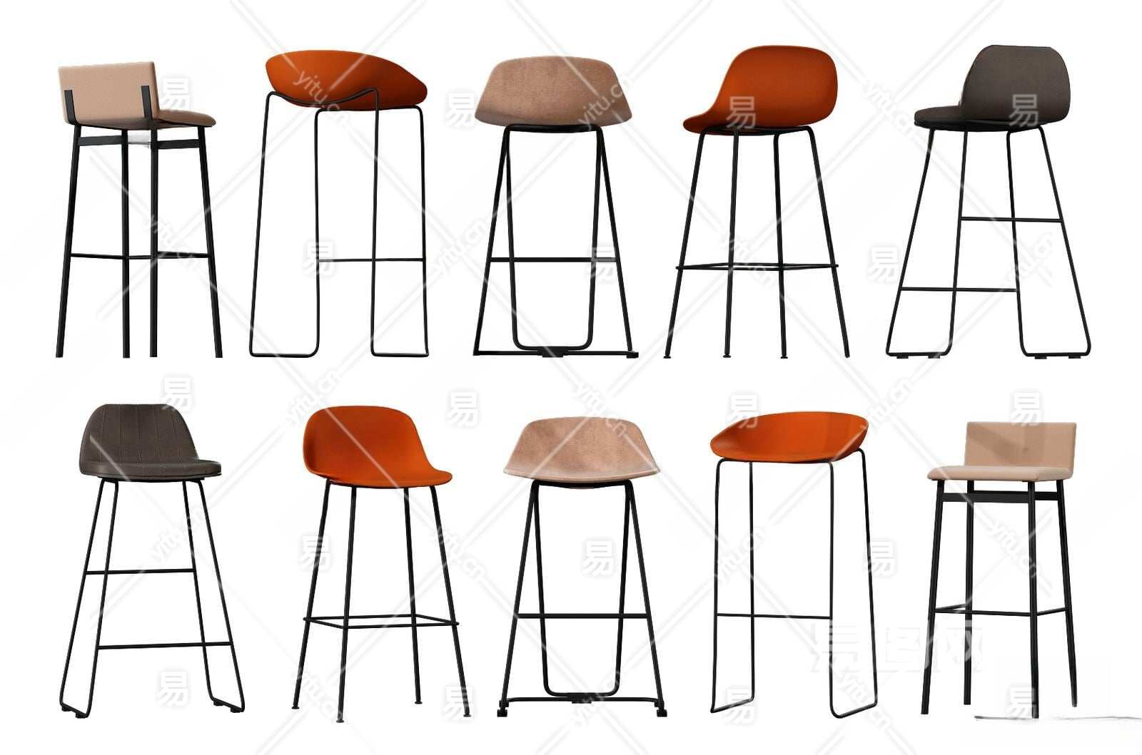 现代吧台椅3D模型下载