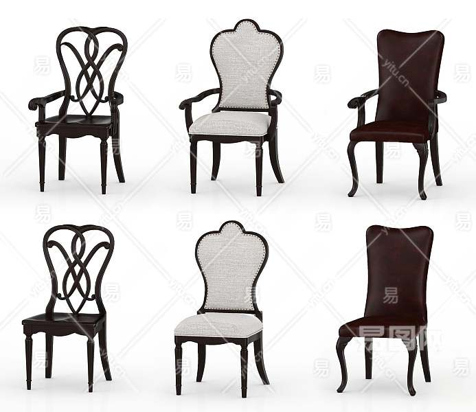 美式餐椅组合3D模型下载