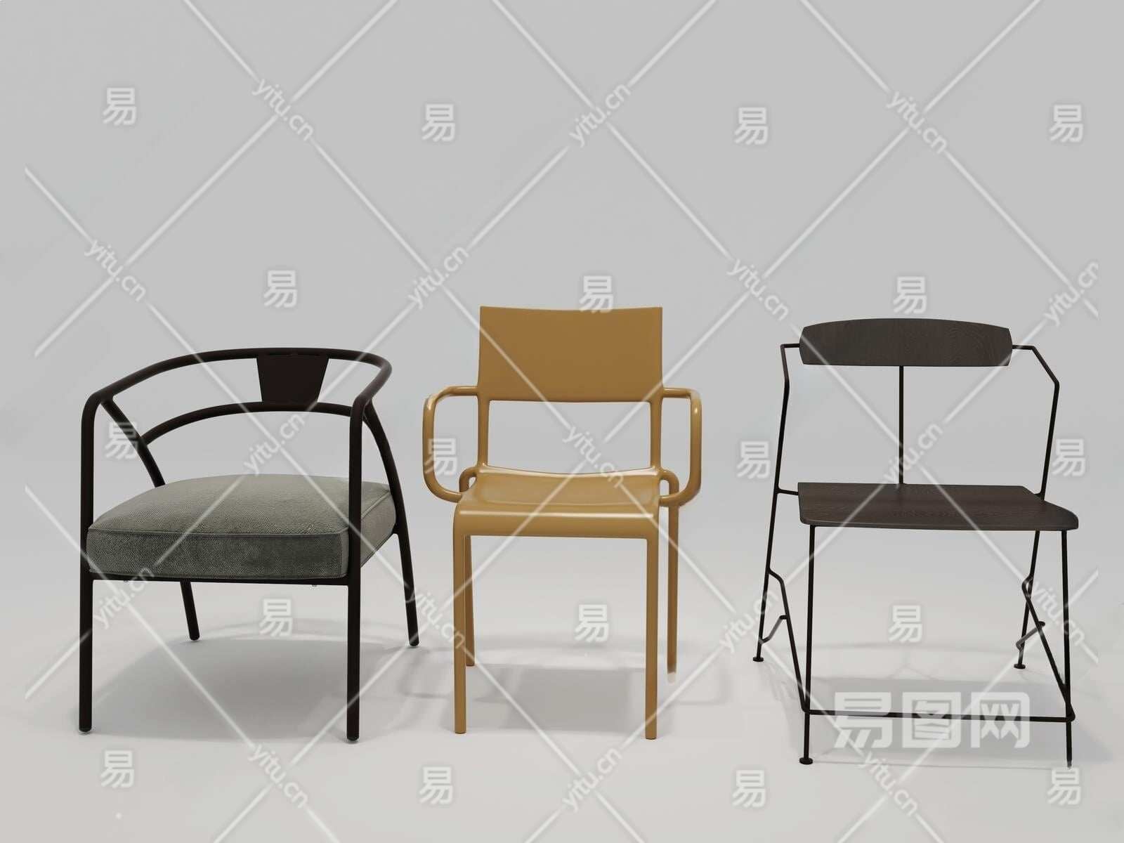 现代餐椅组合3D模型下载