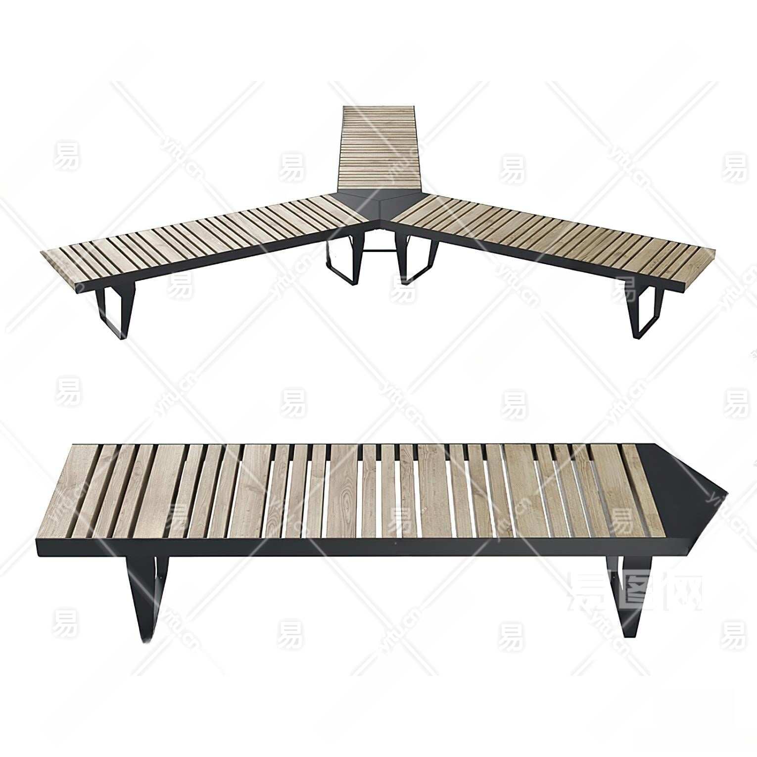 现代户外长椅3D模型下载