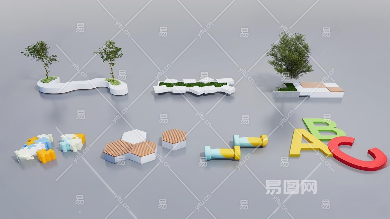 现代景观座椅3D模型下载