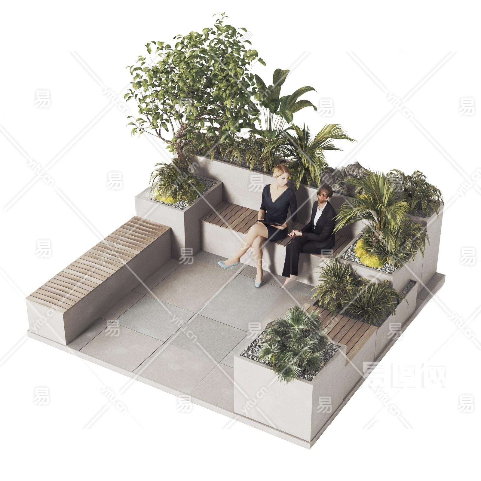 现代景观座椅3D模型下载