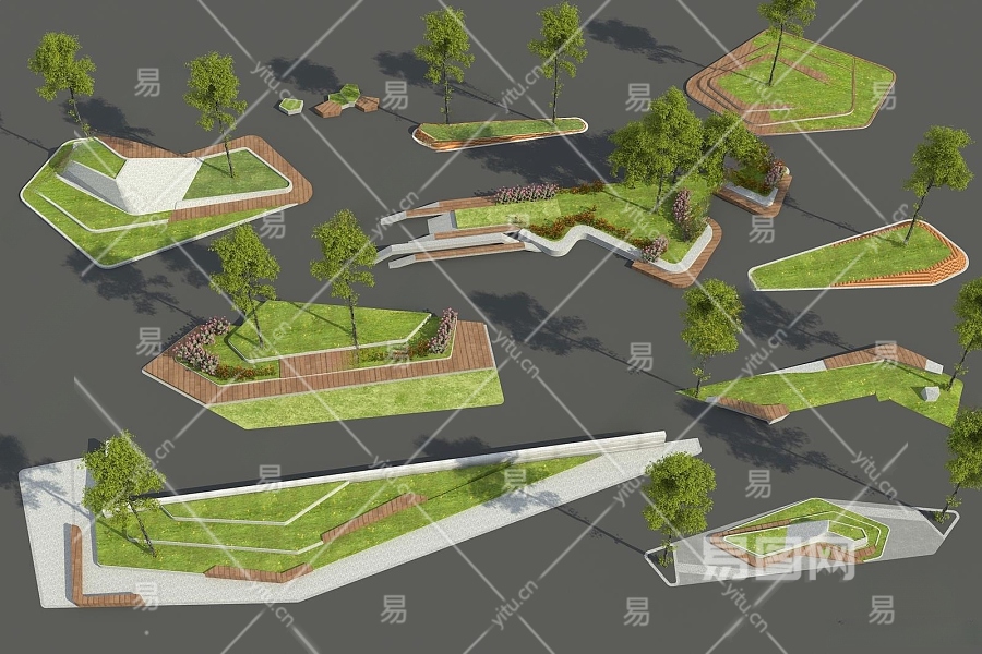 现代景观座椅3D模型下载