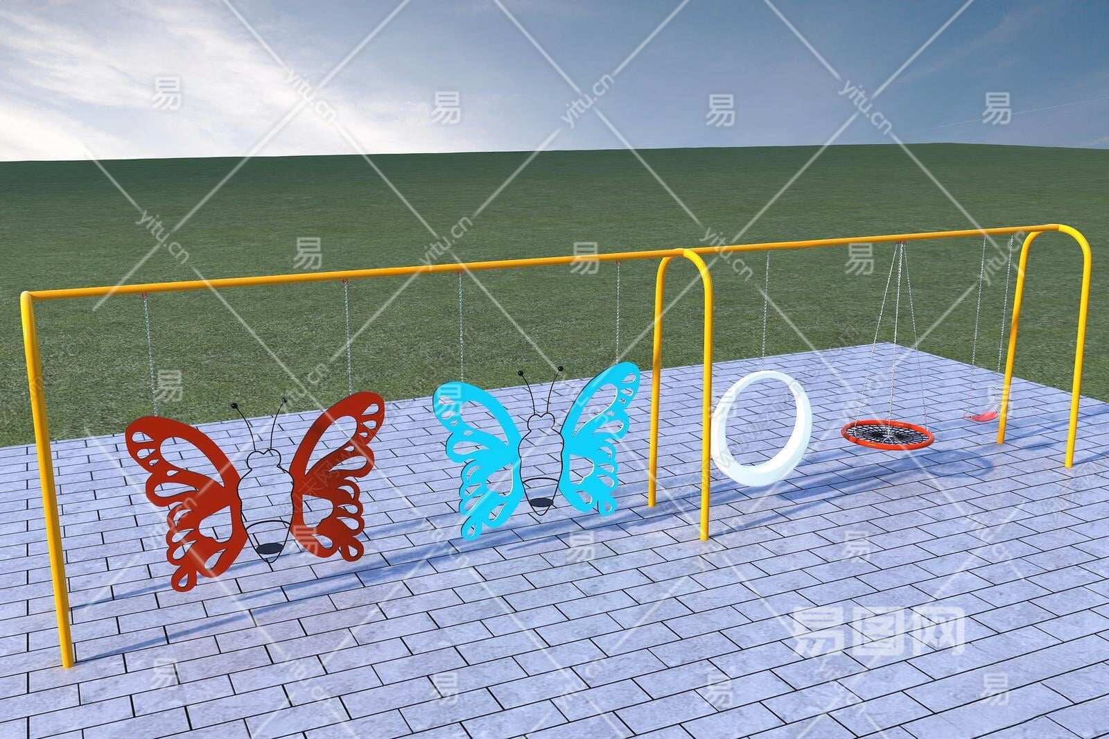 现代无动力蝴蝶秋千3D模型下载
