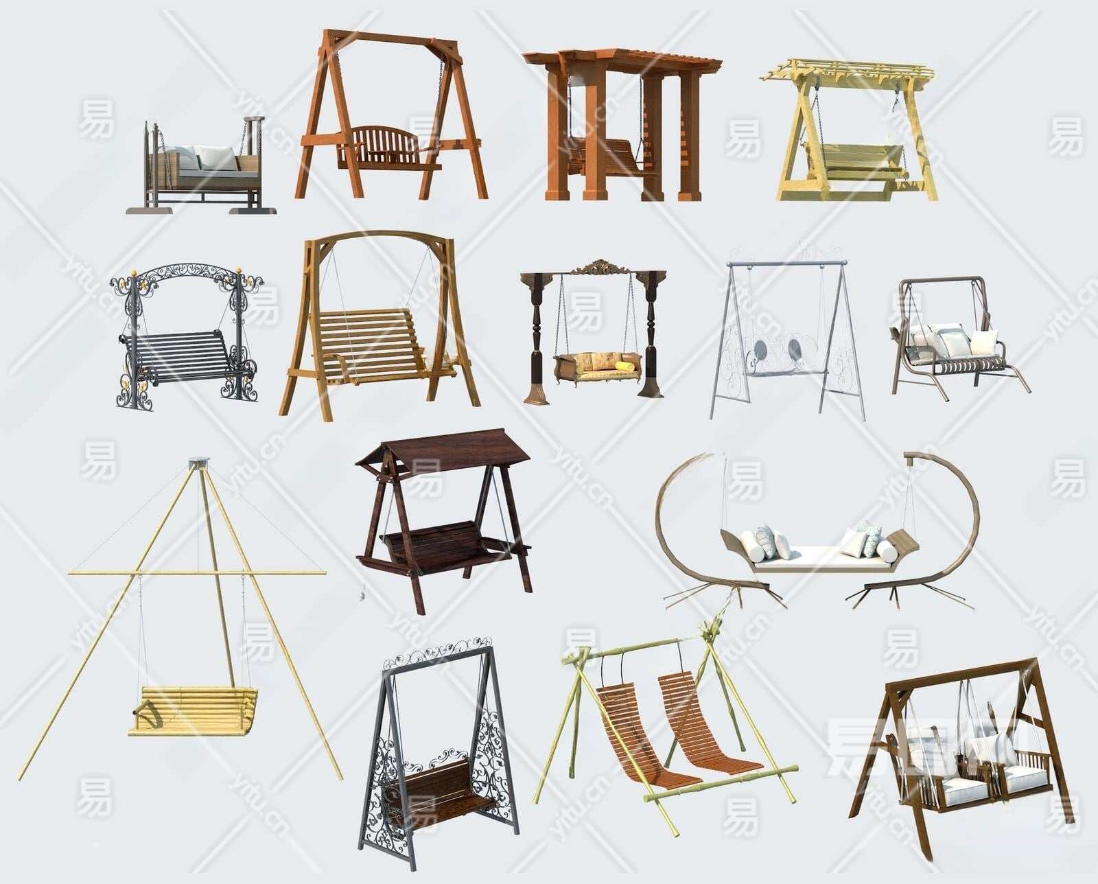 现代秋千椅3D模型下载