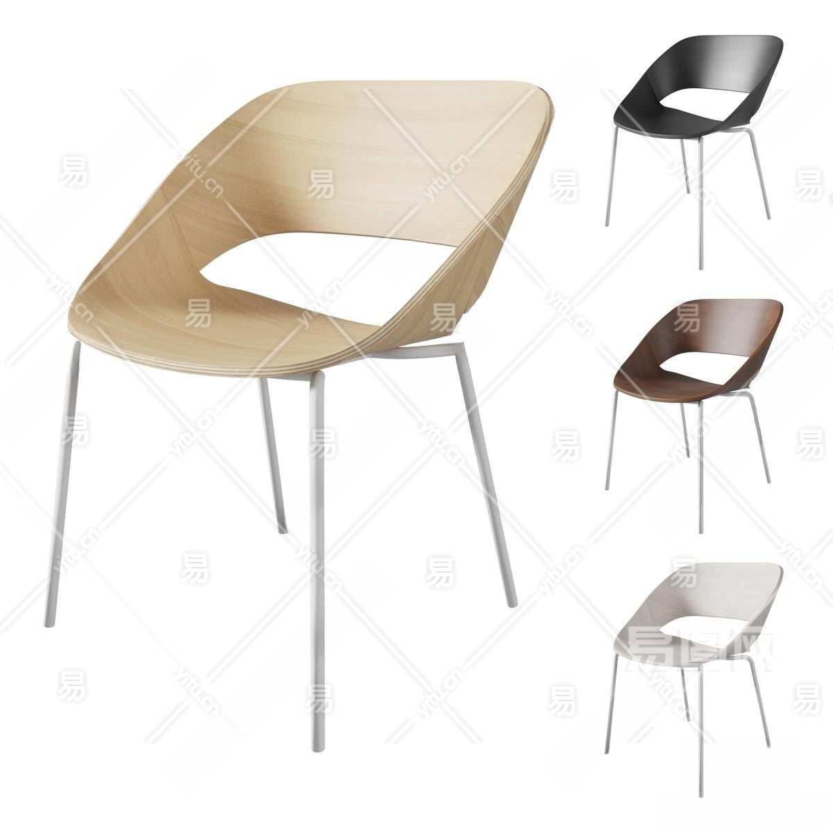 现代实木单椅3D模型下载