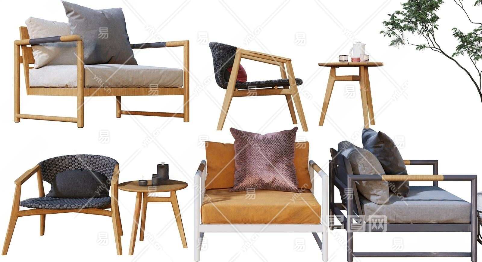 新中式休闲椅组合3D模型下载