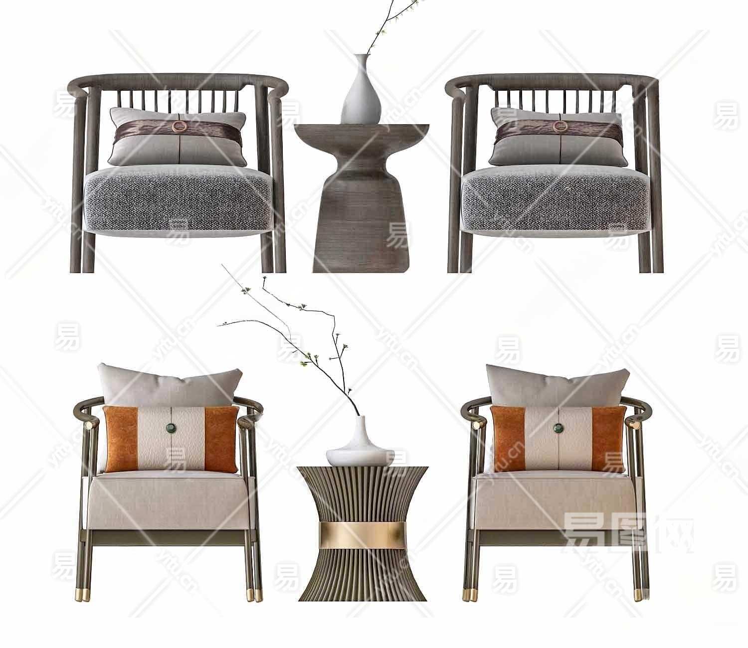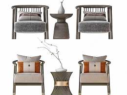 新中式椅子茶几组合3D模型下载