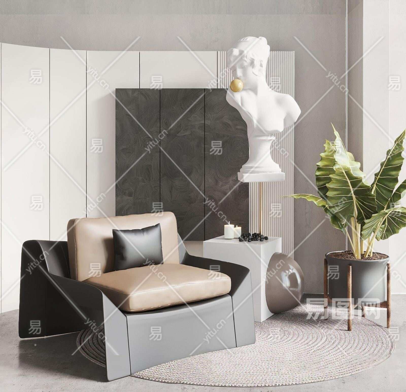 现代皮革休闲椅3D模型下载