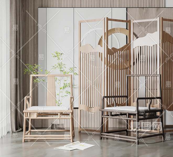 新中式休闲椅3D模型下载