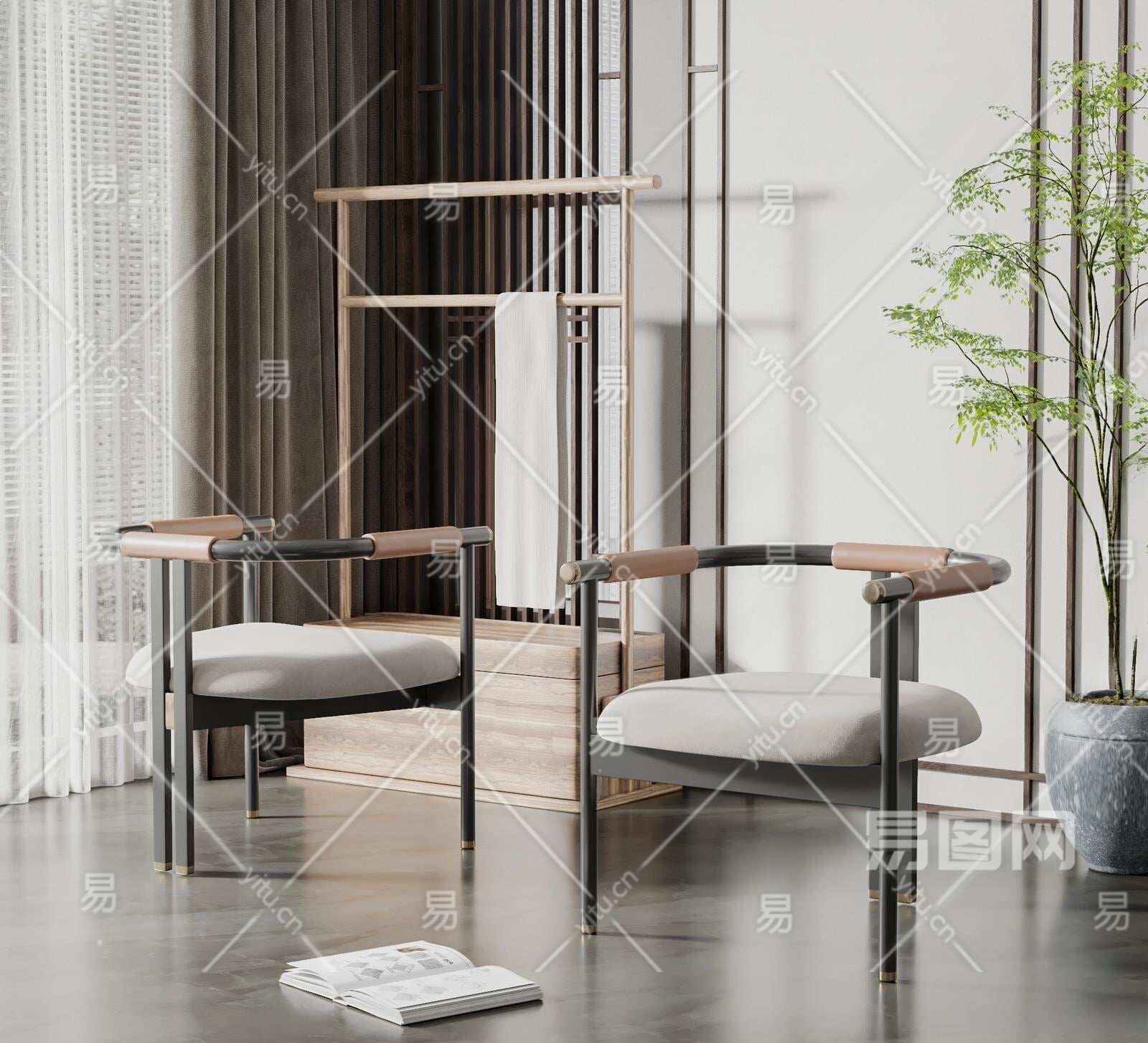 新中式休闲椅3D模型下载