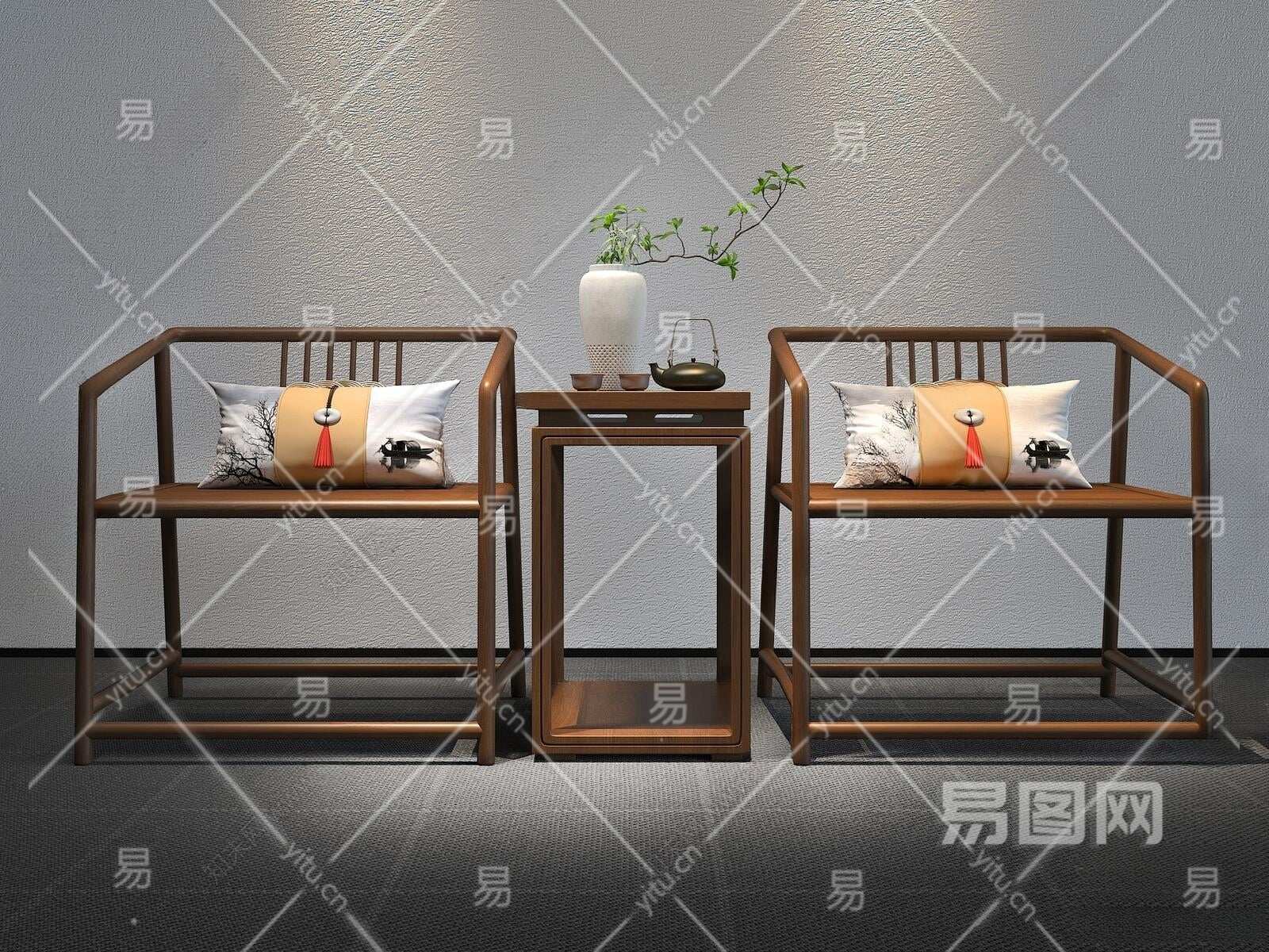 新中式休闲椅3D模型下载