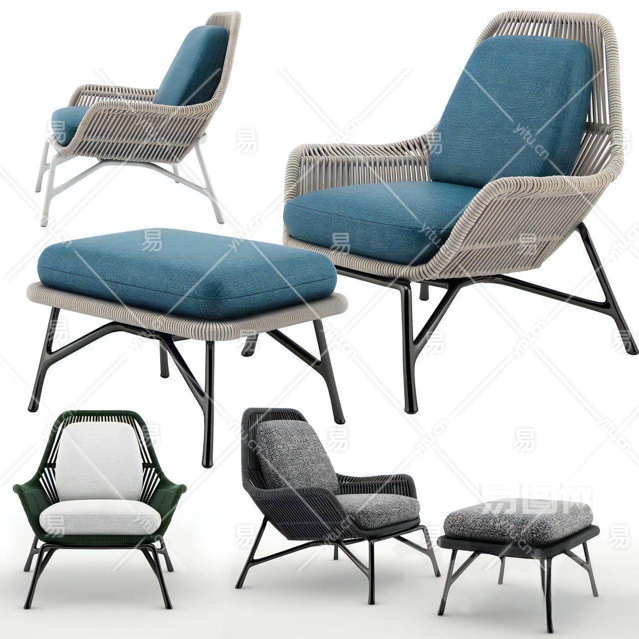 现代布艺休闲椅-3D5