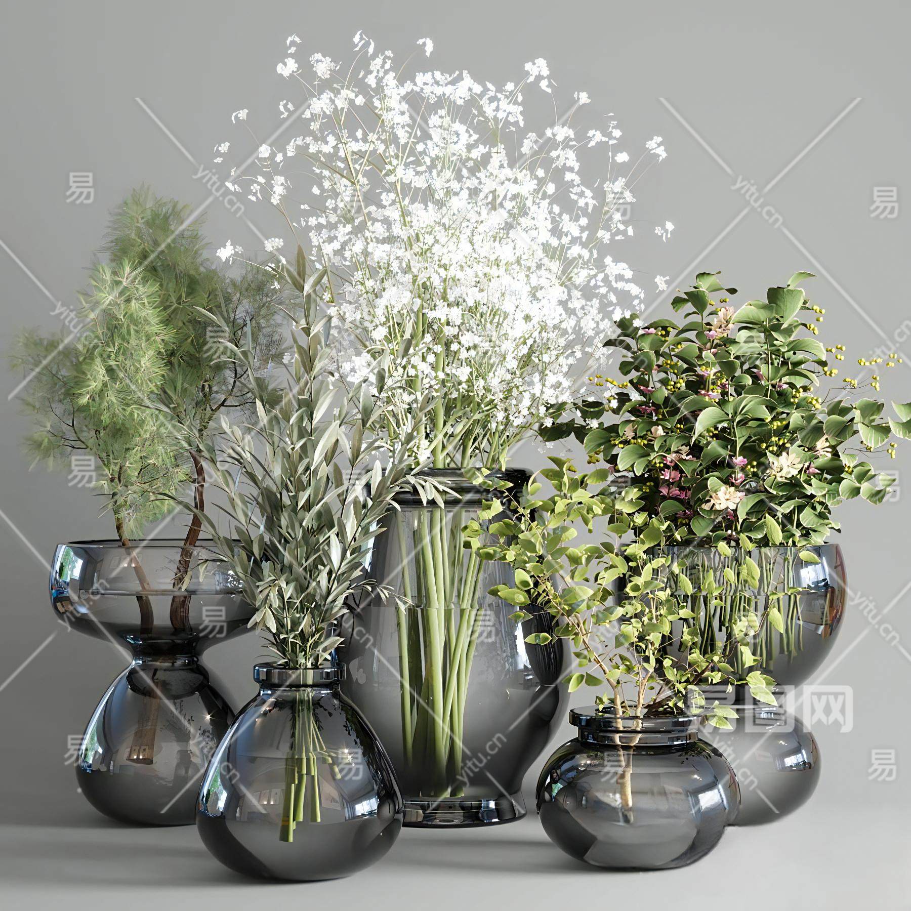 系列植物花束室内玻璃花瓶
