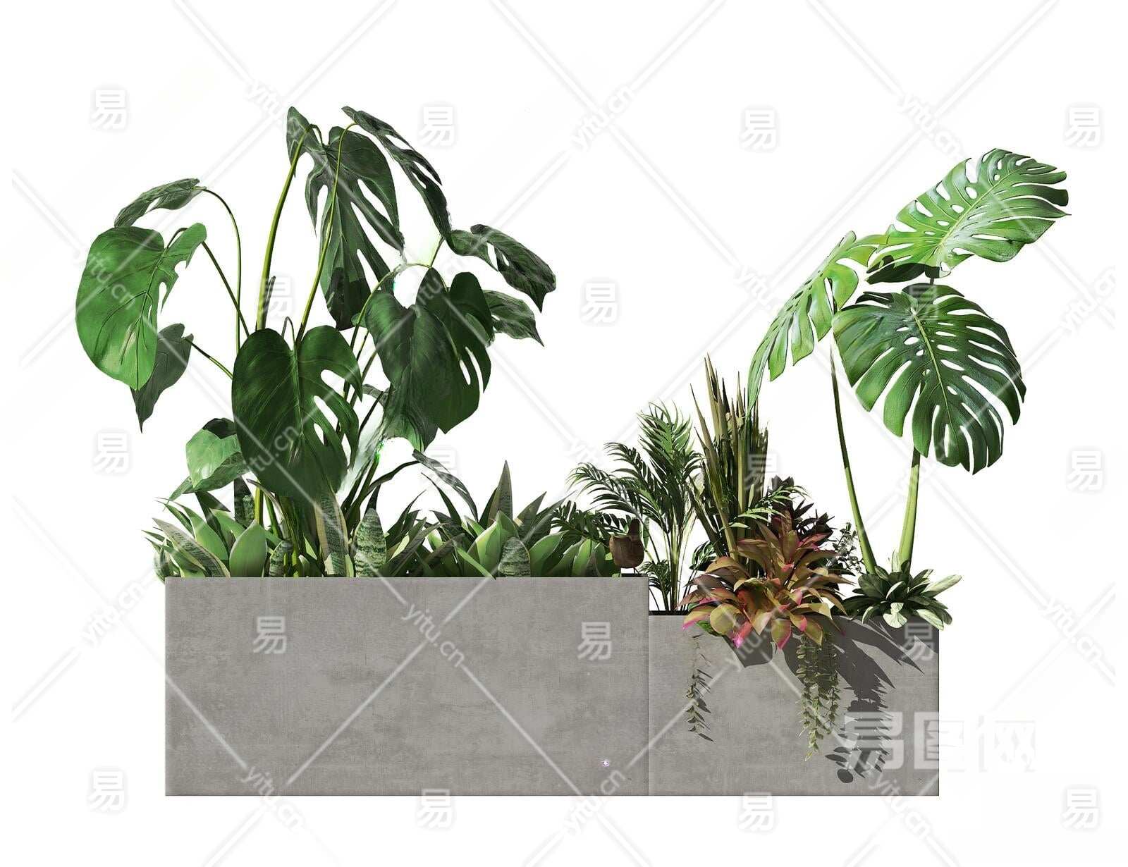 现代植物盆栽3D模型下载