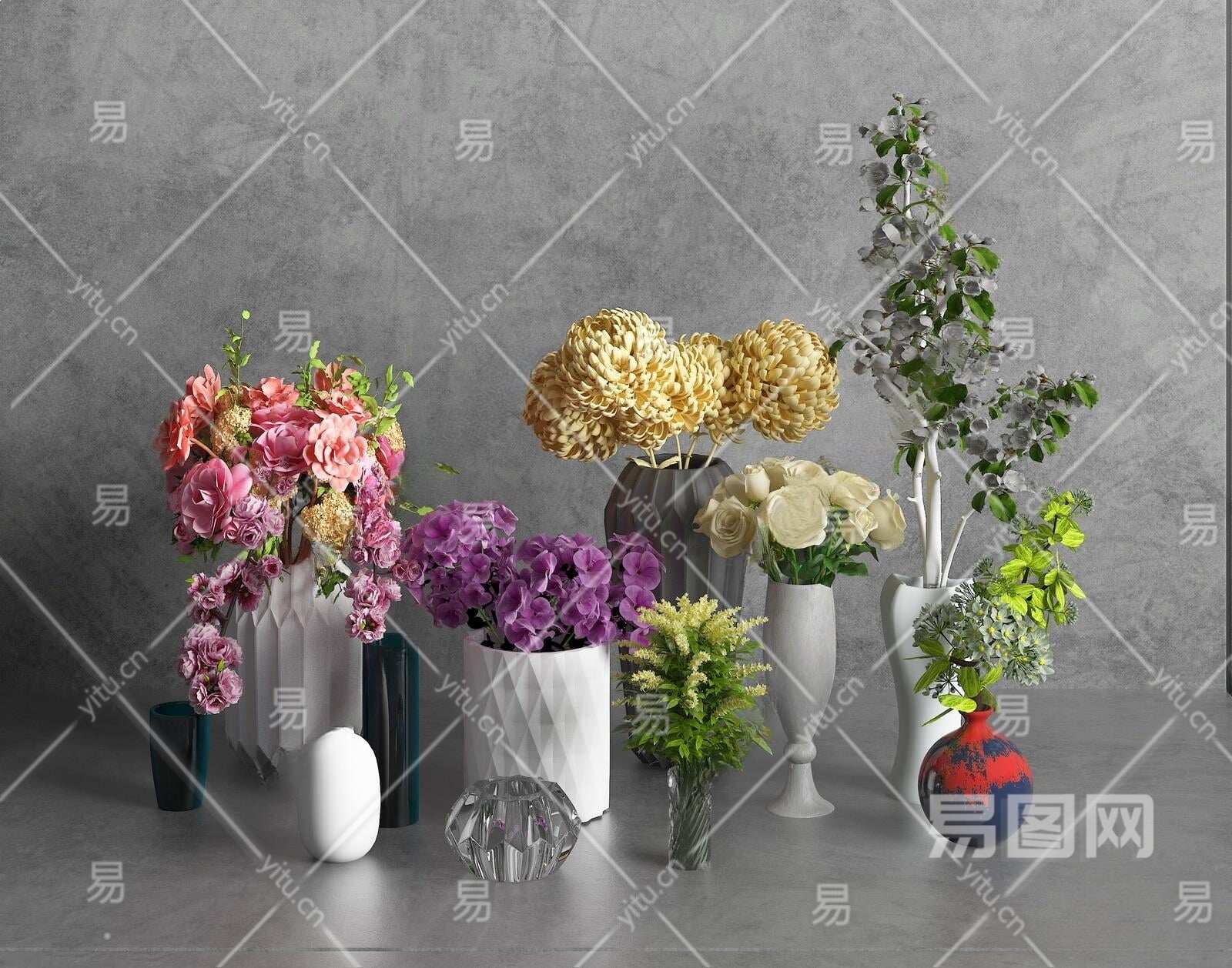 北欧插花花瓶组合3D模型下载