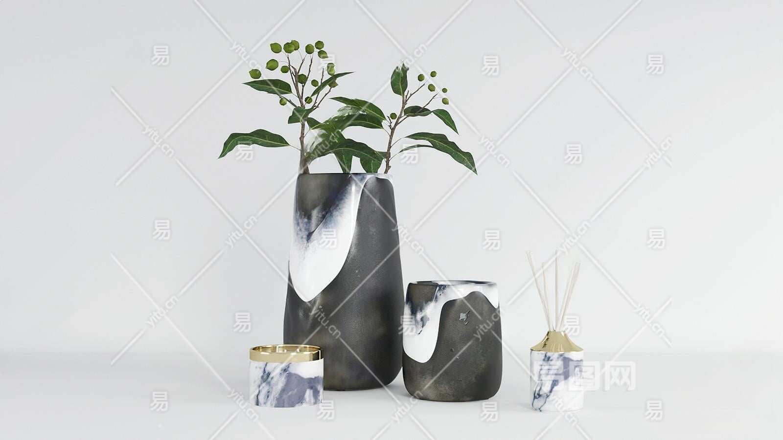 现代盆栽3D模型下载